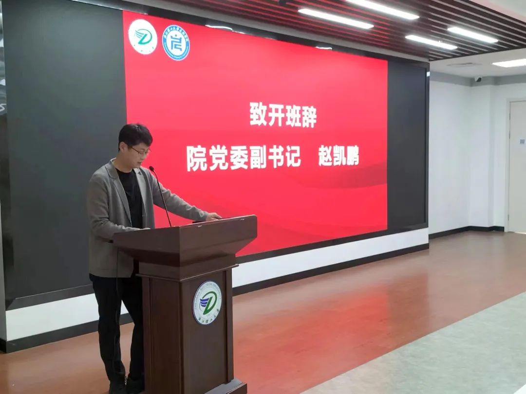 赵凯鹏致开班辞,他介绍了学院的《学生干部素质能力提升工程方案》,并指出举办学生干部素质能力提升工程培训班主要出于三个目的:一是顺应当前社会对于人才的需要,二是执行校内巡察整改的需要,三是满足学生个人发展的需要。他希望各位同学能够端正学习态度,全身心地投入,严守培训纪律,把握住机会,充分利用丰富的课程资源,学有所得,学有所获,成长为能说会写善做的新时代学生干部。