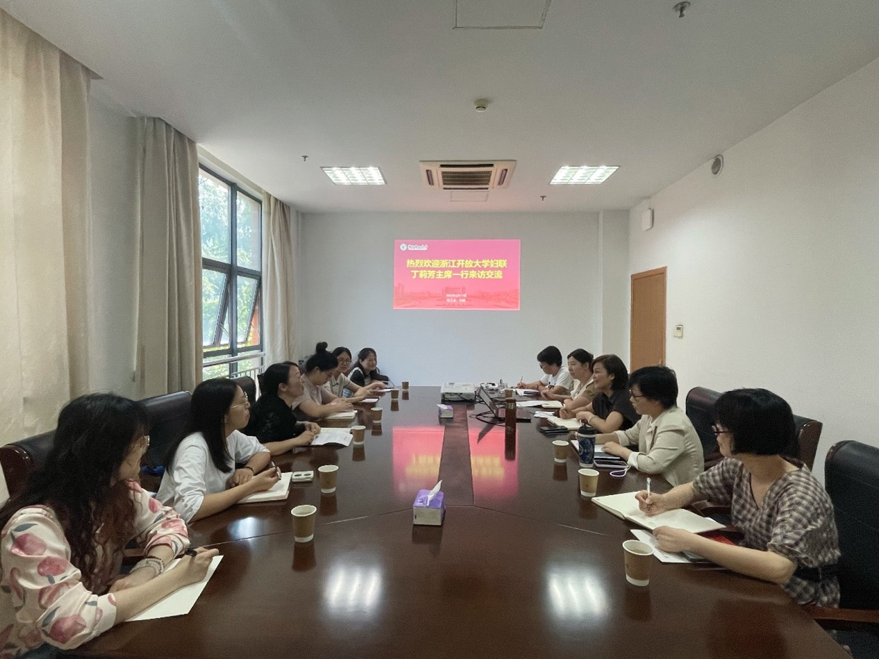 6月17日上午,浙江开放大学妇联常务副主席丁莉芳一行6人来我校开展工作调研与交流活动。校工会、妇联常务副主席龚素瓅,校团委副书记、妇代会执委会委员贺芳琪,浙江省巾帼文明岗创岗单位负责人、理学院心理学系党支部书记严璘璘及相关工作人员参加座谈会,龚素瓅主持会议。