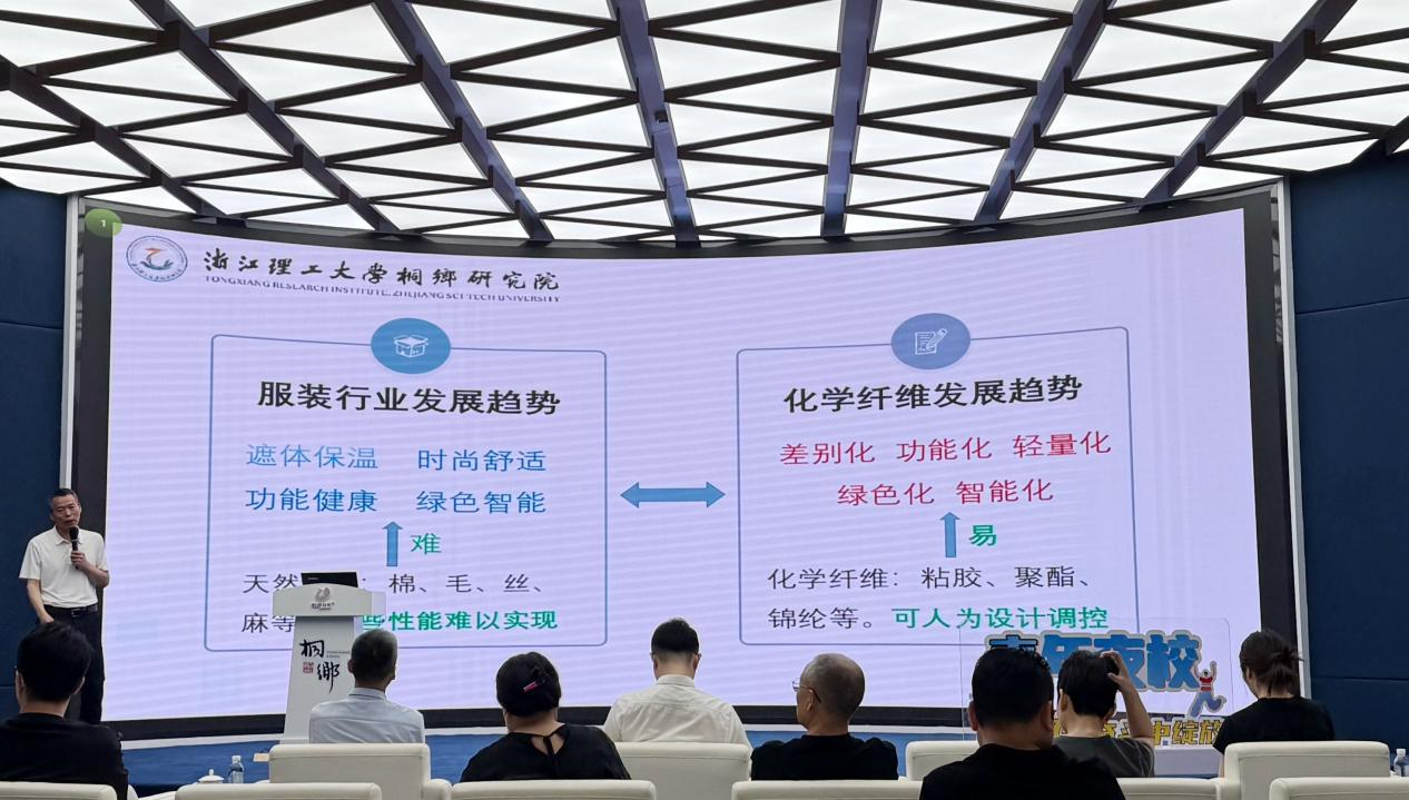 近日,桐乡“青年夜校”政协委员公益课堂在数字经济双创中心举行。桐乡市政协委员、c7网页版桐乡研究院院长(总经理)、c7网页版材料科学与工程学院副教授万军民以《化学纤维材料发展现状及趋势漫谈》为主题,围绕化学纤维材料发展现状、未来发展趋势以及化学纤维如何仿生改性等方面带来了一场精彩的科普盛宴,用生动的案例和通俗易懂的语言,深入浅出地展示了纺织新材料科技的魅力,激发大家对纺织新材料科技的探寻,现场不时爆发出热烈的掌声。