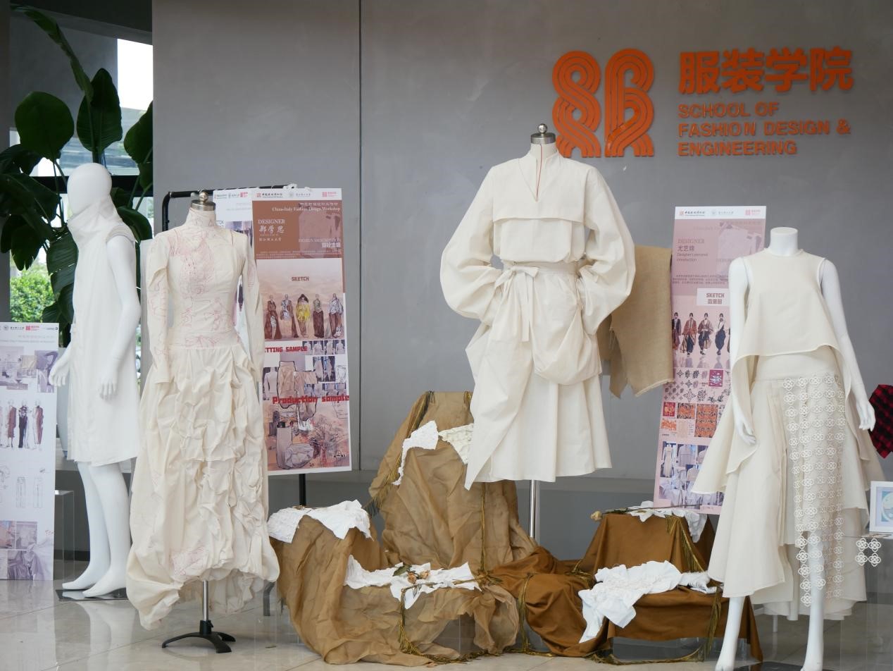 工作坊还组织了企业参访与非遗体验。设计师们走访了INXX、伊芙丽等品牌,学习传统文化与潮流设计的融合实践,并沉浸式体验蓝染技艺,感受非遗工艺的匠心智慧。在设计创作环节,中意团队通过立体剪裁、面料实验等协作,突破文化差异,最终呈现了五组融合东西方美学的时尚作品。