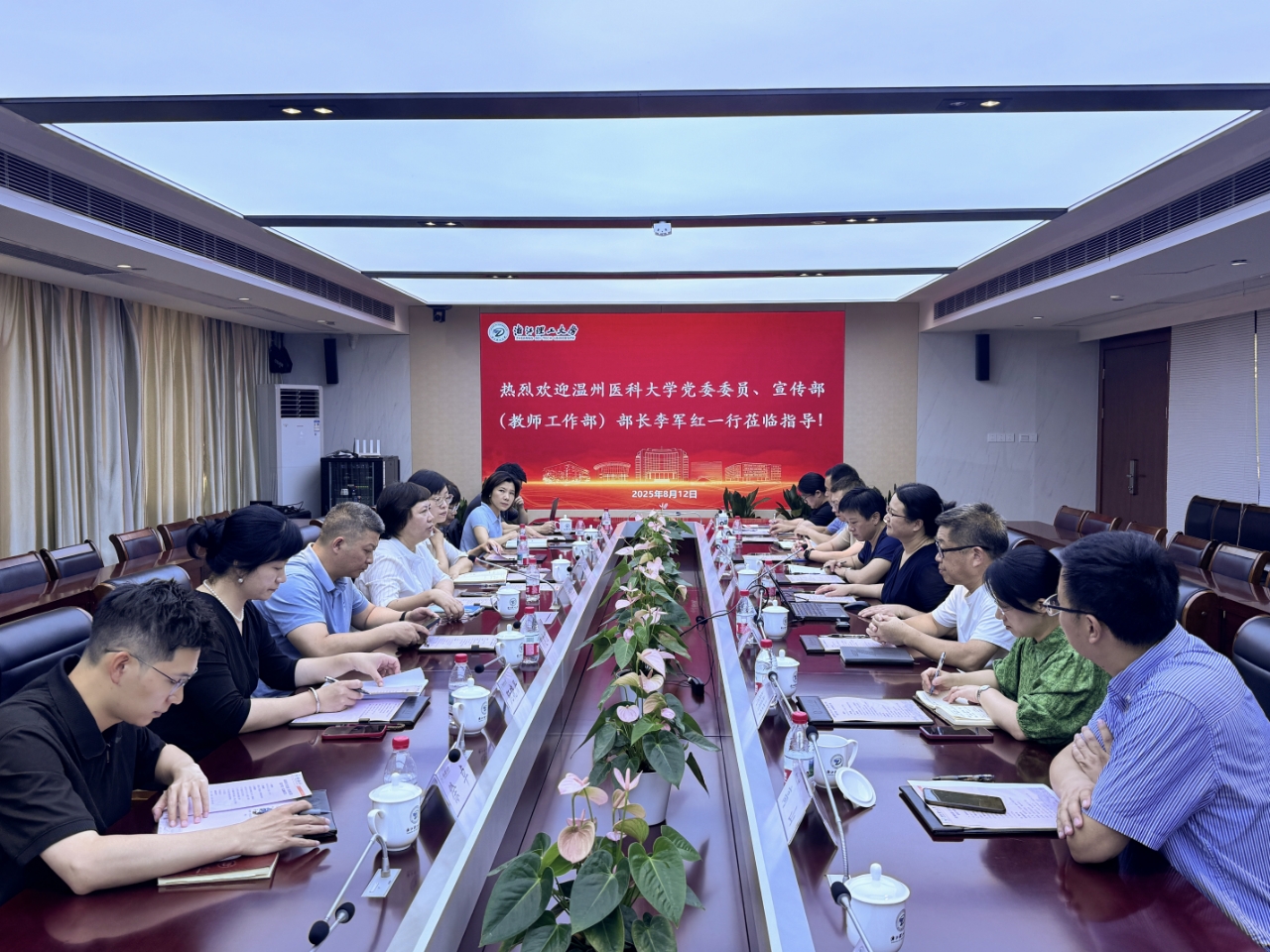 8月12日上午,温州医科大学党委委员、宣传部(教师工作部)部长李军红一行来校调研。c7网页版党委委员、宣传部(教师工作部)部长高丽静出席并主持座谈会。