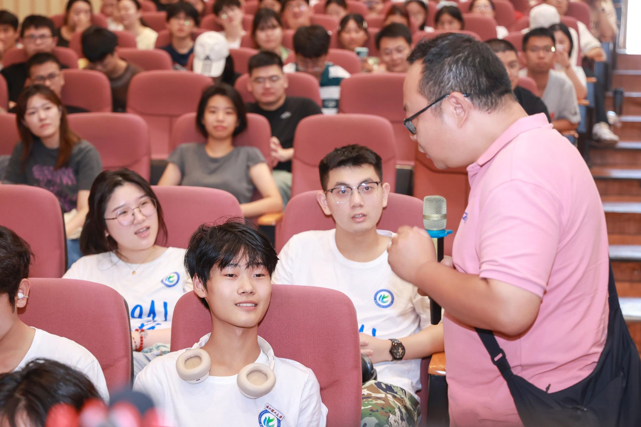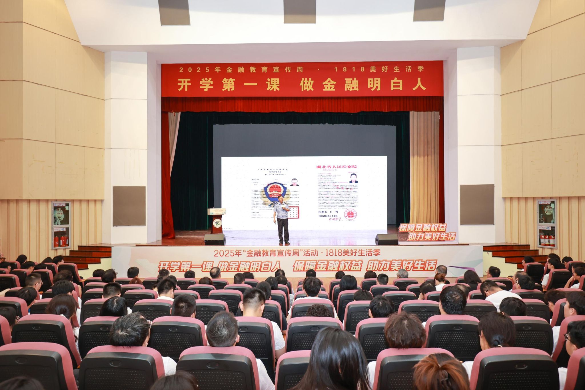 活动现场举行了2025年“金融教育宣传周”启动仪式。《1818黄金眼》记者刘吉龙、卢宝祥、陈玉脉以及杭州市公安局金牌反诈宣讲师游凌飞分别登台,结合真实案例和媒体经验,为现场同学带来生动实用的反诈知识分享。游凌飞警官更以“反诈快板”等创新形式开展互动宣讲,现场气氛热烈。在七大金融机构联合开展的互动问答环节,同学们踊跃参与反诈知识竞答,在轻松氛围中强化了金融风险防范意识。