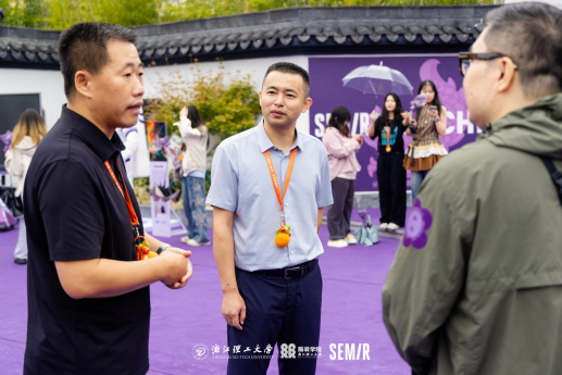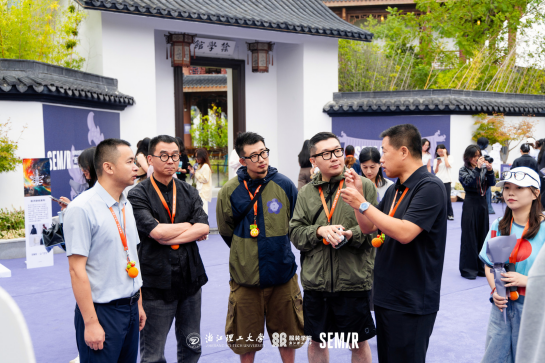 浙江森马服饰股份有限公司上海党总支书记、森马品牌董事会秘书兼总经理助理宗惠春,服装学院党委书记吴跃峰,院长崔荣荣,党委副书记吴霁乐,临平校区管委会办公室副主任包新春出席活动,临平区经科局、临平区融媒体中心、临平新城相关代表受邀莅临现场;森马创意高级总监黄华琳,设计高级专家陈志诚、李建国等企业嘉宾,服装学院产教融合协同中心、时尚传播中心主任周伟,教师代表严昉、贺华洲、陈翔等全流程现场指导。活动吸引了全校数百名师生积极参与,现场气氛热烈。