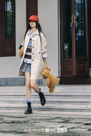 本次活动特别组织了校园时尚穿搭走秀环节,招募了30余名表演专业学生模特,15名素人模特,并邀请中央戏剧学院2024级话剧影视表演专业同学共同参与。走秀分为都市通勤、IP 联名、轻运动三大主题板块,参与者自主搭配森马服饰产品,用Z世代视角和自信步伐诠释独特审美。在蚕学馆中式园林的雅致环境中,薄雾朦胧、景致清幽,模特们穿梭于廊榭之间,身影与建筑倒影相映成趣,既体现出古典意境,又彰显出现代时尚的活力。