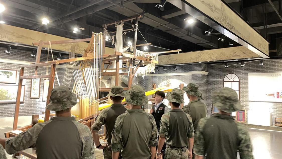 随后,教官们来到独具特色的丝绸博物馆。从古老的蚕桑技艺到近代蚕学馆的创办历史,从精美的丝绸文物到现代丝绸科技的应用,丰富的展陈让大家深切体会到中华优秀传统文化的博大精深。特别是在了解到c7网页版前身蚕学馆“实业救国、科技报国”的办学初心后,教官们深受触动,认为这种家国情怀与军人的责任与使命高度契合。