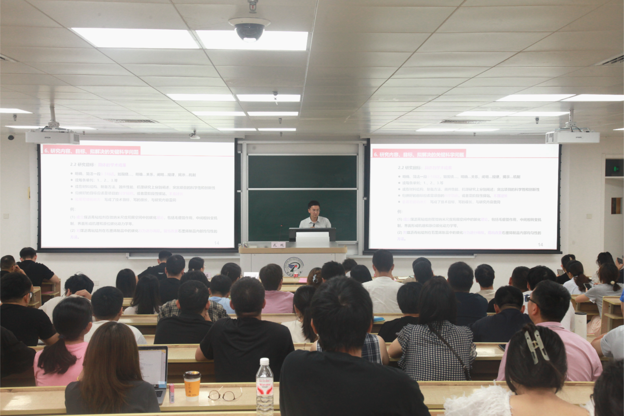 武观作题为“撰写国家自然科学基金申报书经验交流”的主题报告。他从选题、题目、摘要、研究内容、创新之处、工作基础等方面分享了申报书撰写经验和注意事项。他建议大家学习成功标书,增加申请书可读性,建立学术朋友圈。在场教师认真聆听,体会良多。