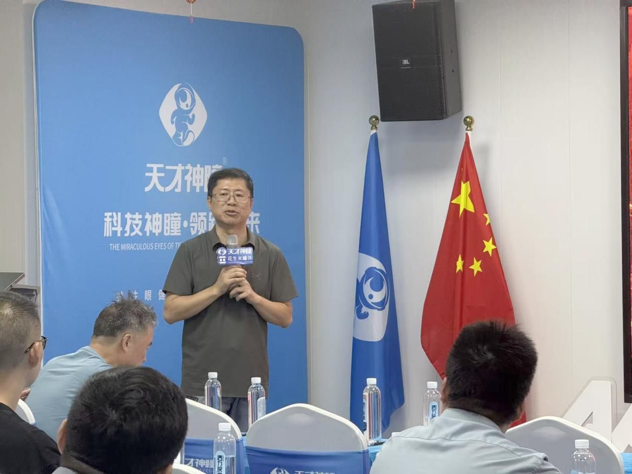 随后,走访队伍来到杭州天才神瞳实业有限公司。公司CEO、学院94级机电一体化专业校友傅建兵热情接待,他向校友们详细介绍了公司的发展历程以及在工业质检、智慧医疗、智慧城市等领域的核心技术和市场布局,重点展示了公司自主研发的智能动态变焦技术,并现场演示了公司研发的最新产品。傅建兵表示,母校给予的不仅是专业知识,更是“踏实做事、敢闯敢试”的精神。在场校友对傅建兵的创新成果表示高度肯定,大家一致认为,近视防控是关乎下一代健康的民生工程,天才神瞳的技术突破市场前景广阔,为行业树立了标杆。在场校友围绕行业趋势、技术应用等话题展开热烈讨论,现场氛围活跃。