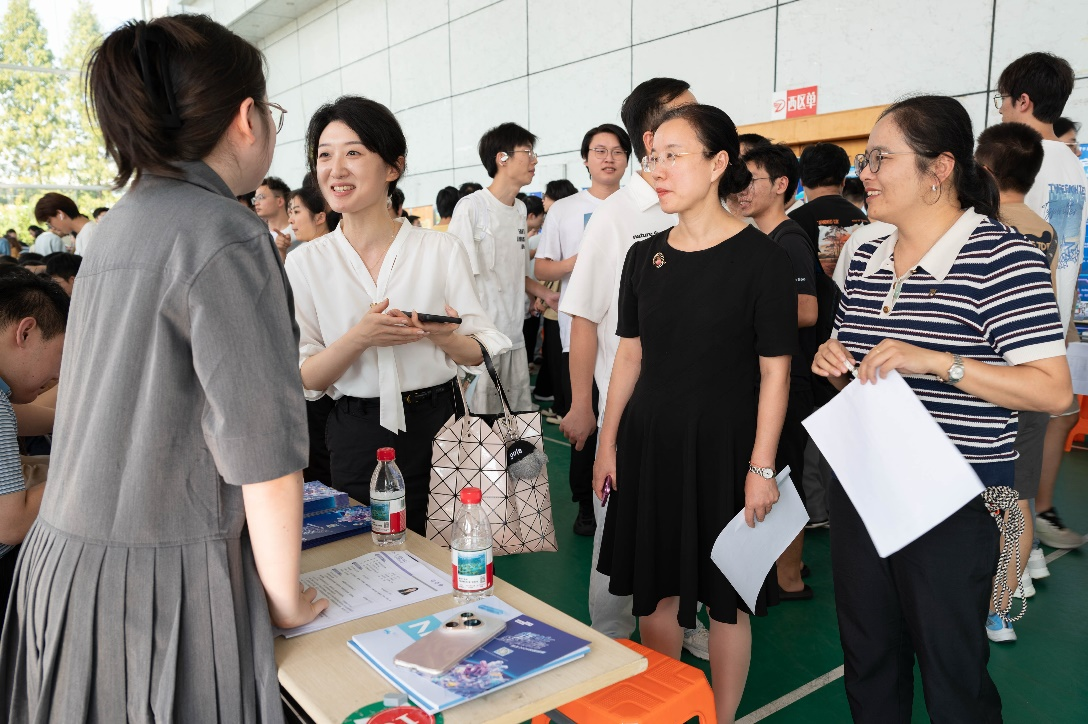 计算机学院副院长潜睿睿、副院长林望、党委副书记朱敏、学工办主任顾红建、毕业班辅导员周天姝、李想走进现场,与在场用人单位展开深入交流。他们仔细询问当下就业环境中企业的岗位需求与人才标准,认真倾听用人单位对学院人才培养模式、就业服务工作的意见建议,并走到同学们中间,鼓励大家找准自身职业定位,树立科学就业观,以主动积极的心态规划求职之路。