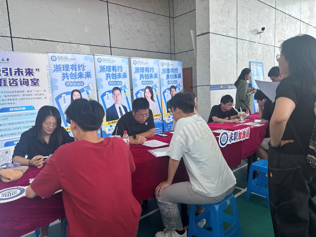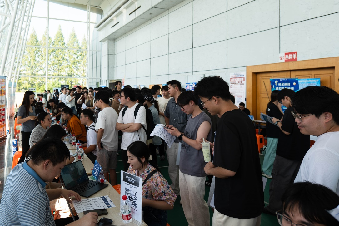 10月11日下午,由计算机学院、信息学院、理学院共同承办的2026届毕业生秋季专场招聘会暨校友企业专场招聘会在下沙校区体育馆二楼举行。本次招聘会邀请了杭州海康威视数字技术股份有限公司、浙江大华技术股份有限公司、浙江宇视科技有限公司、恒生电子股份有限公司等近90家实力雄厚的用人单位,为学生倾心提供了近3000个就业岗位。活动现场热闹非凡,参与其中的学生达700余人。同学们以积极的心态和充分的准备主动递交简历,展现出对开启职业征程的强烈期待与憧憬。