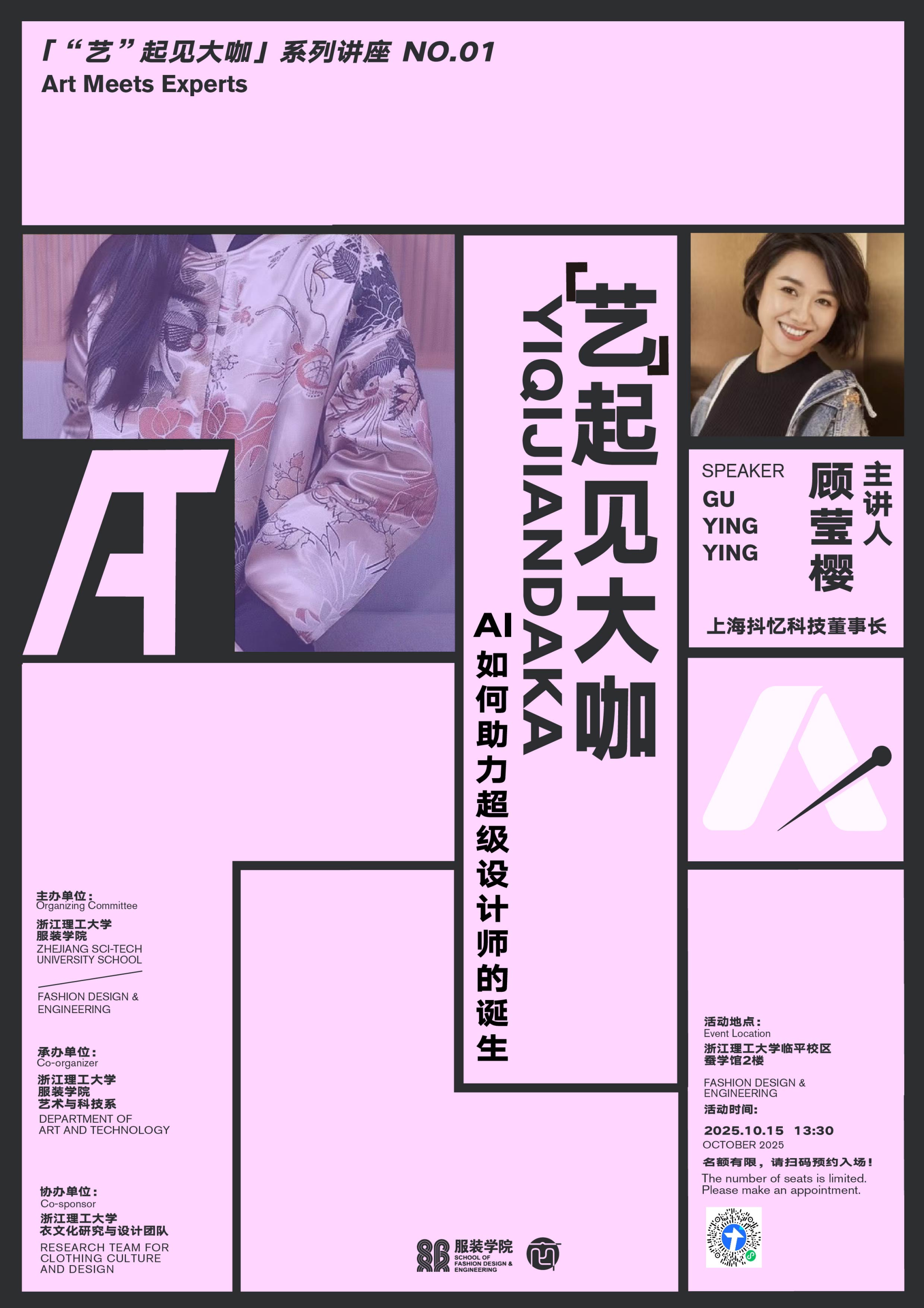 10月15日,服装学院举办“艺起见大咖”系列讲座首场活动。本次讲座以“AI如何助力超级设计师的诞生”为主题,特邀上海抖忆科技有限公司董事长、上海市虹口区政协委员、iMuse.AI创始人、中国服装设计AI领域领军者顾莹樱担任主讲嘉宾。服装学院副院长顾冰菲、艺术与科技专业及数智时尚设计微专业师生共同参与,活动由艺术与科技系主任陈敬玉主持。
