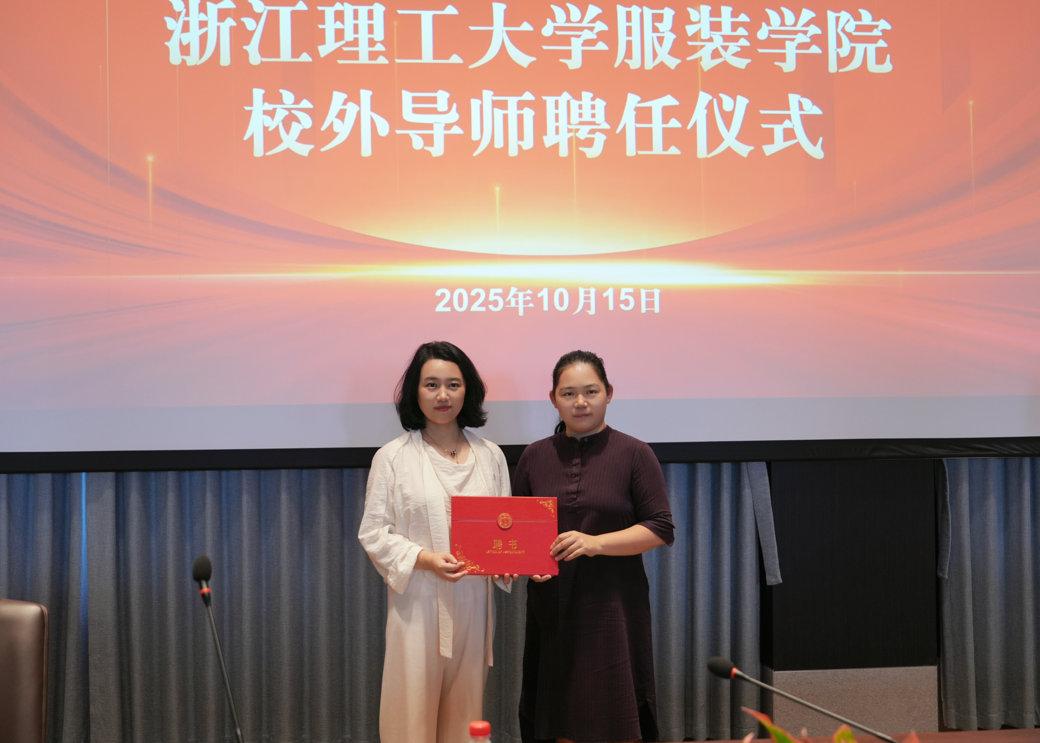 为深化产教融合,现场举行了聘任仪式,顾冰菲为顾莹樱颁发“c7网页版服装学院校外导师”聘书,依托其产业经验,助力学生对接行业前沿需求。