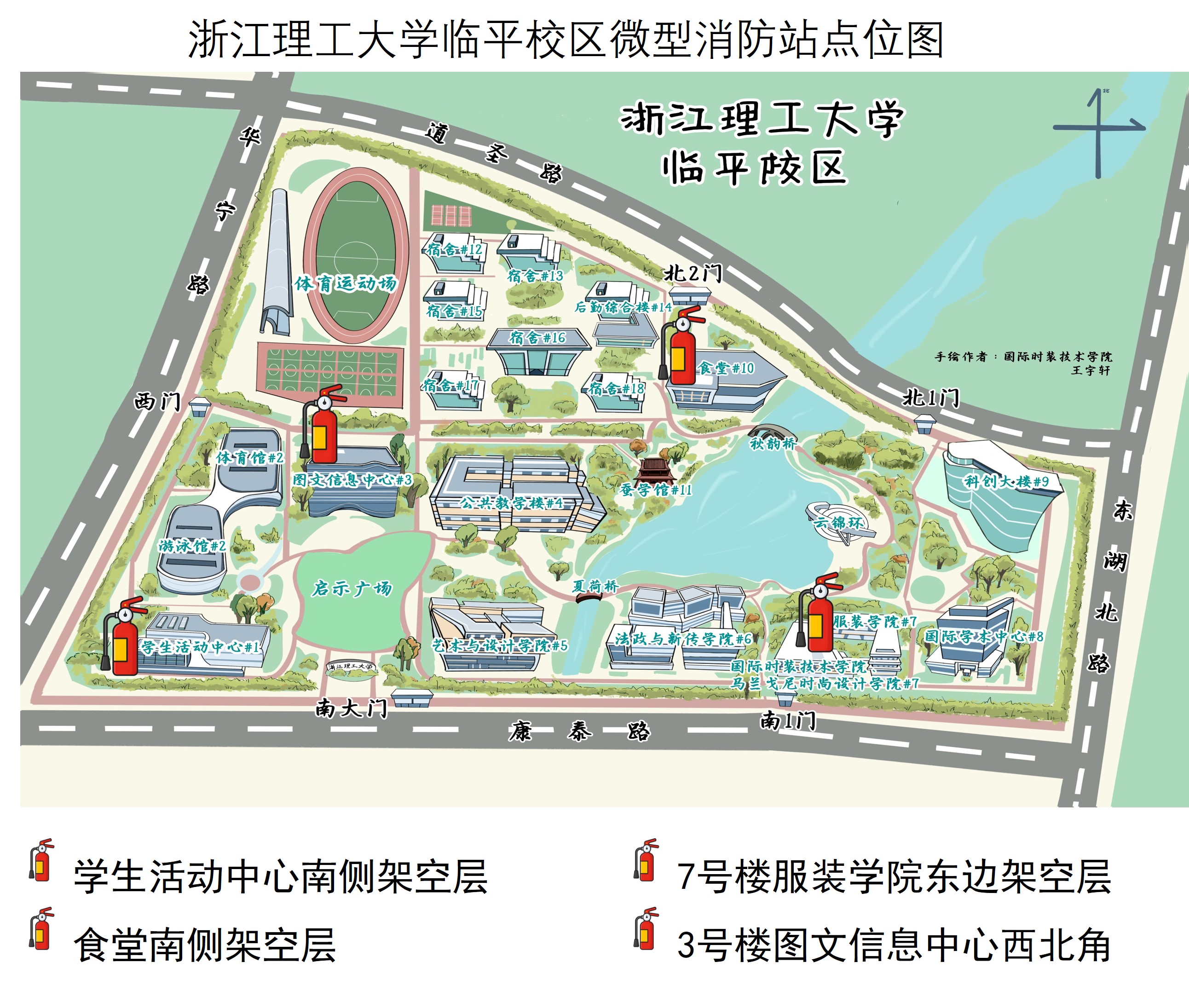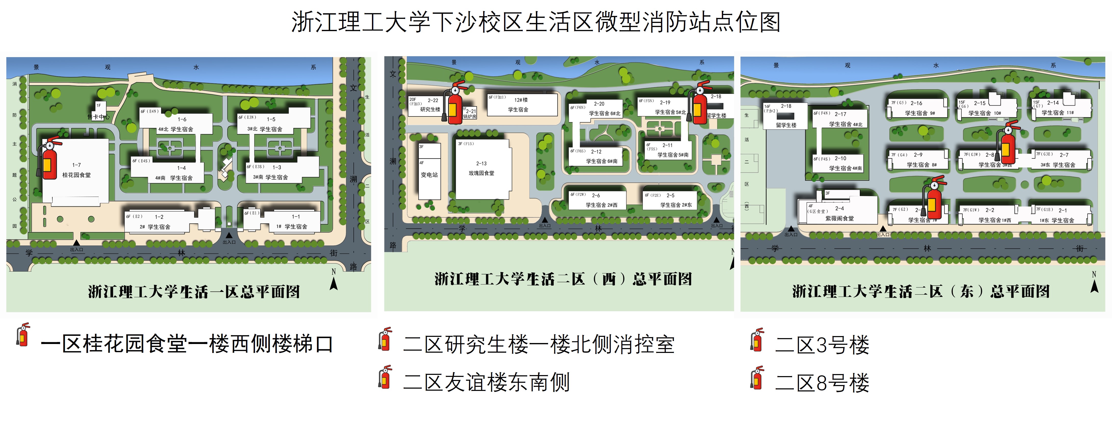 新建的14个微型消防站分布于人员密集及重点防控区域,包括下沙校区南大门、行政楼、体育馆、学生活动中心、电动自行车充停处等多处,以及临平校区学生活动中心、7号与10号楼等点位。学校还对原有4个站点进行升级改造,形成新旧联动、共18个站点的网格化布局,实现消防救援盲区精准覆盖。