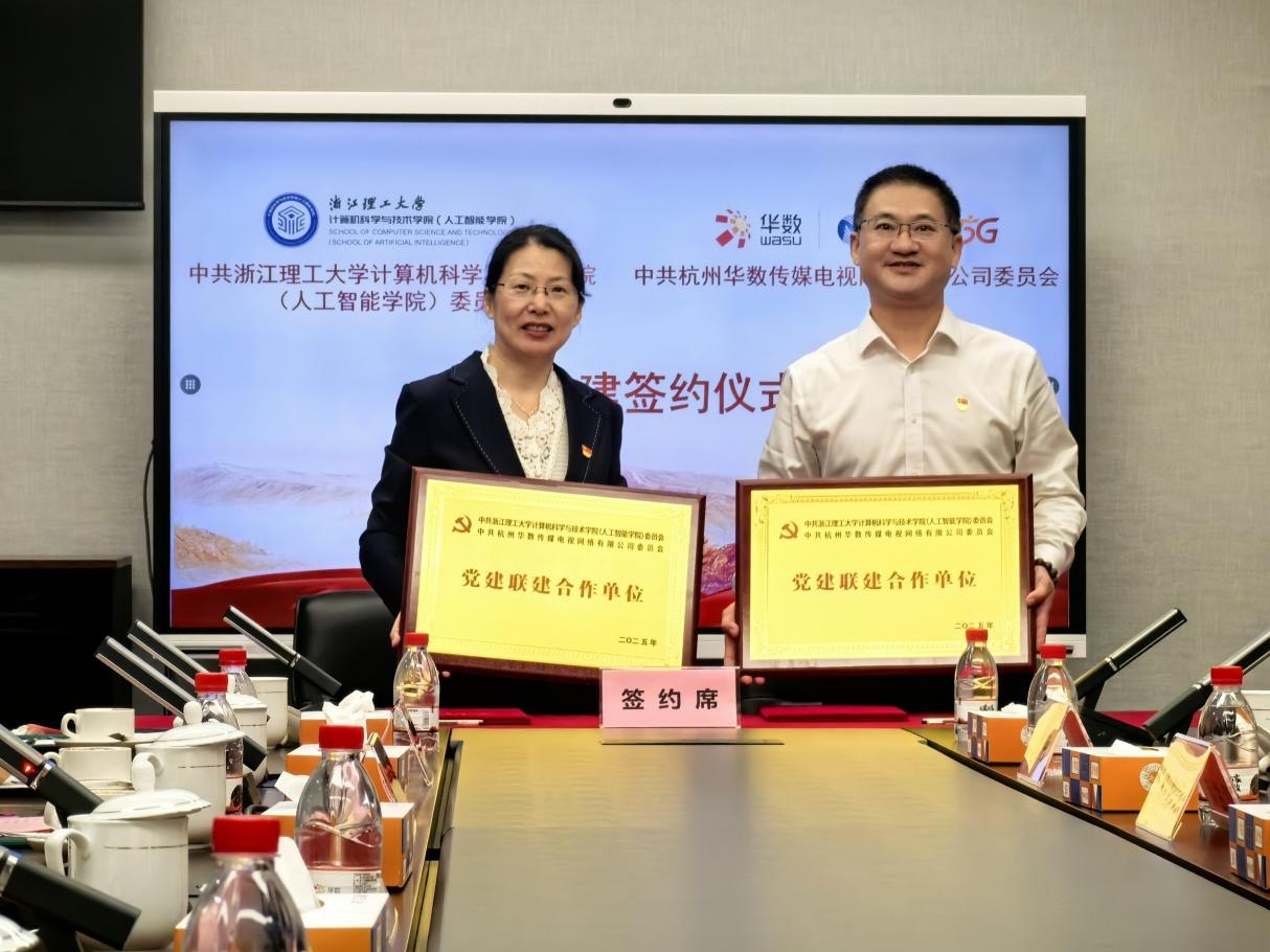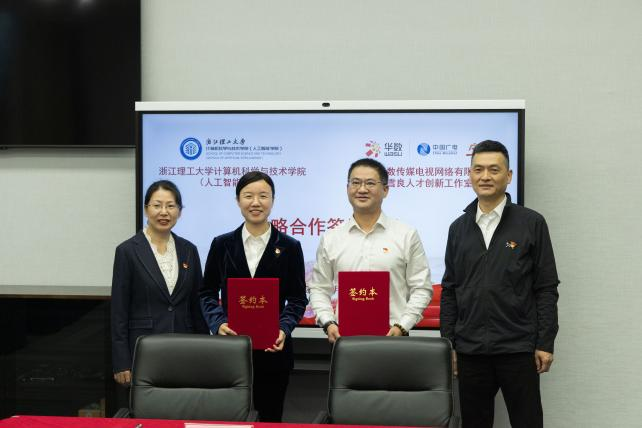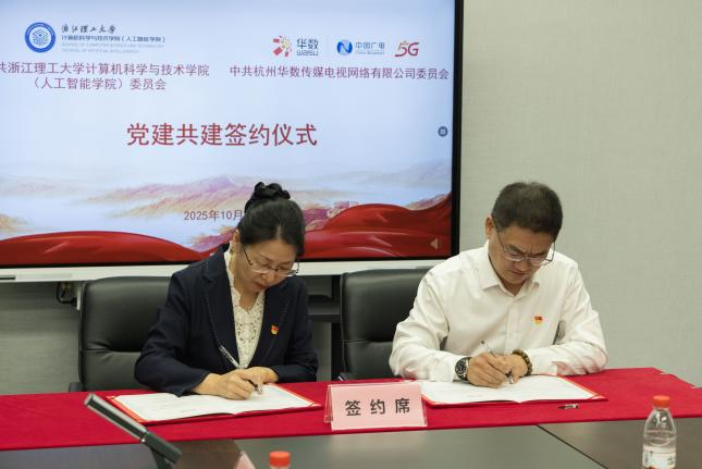 10月30日,c7网页版计算机科学与技术学院(人工智能学院)与华数传媒网络有限公司临平分公司在华数产业园举行党建共同体签约仪式暨校企战略合作签约会。华数传媒控股股份有限公司党委副书记、总裁沈子强,临平华数党委书记、执行董事、总经理印天石,党委副书记黄兰洁,党委委员胡佳,财务总监李丹,杨雪良工作室负责人杨雪良,计算机科学与技术学院(人工智能学院)党委书记黄黎,副院长潜睿睿,党委副书记朱敏,学术副院长相东明,专职组织员沈晓斐,青年教师代表马汉杰、张宇等出席活动。