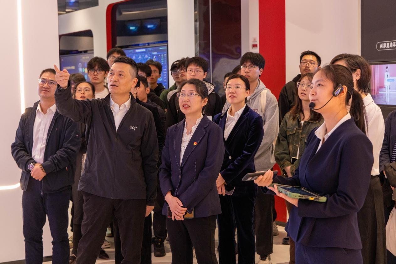 在沈子强等领导的陪同下,黄黎一行参观了华数国家实验室,深入了解了华数在传媒网络领域的前沿技术研发与应用成果。