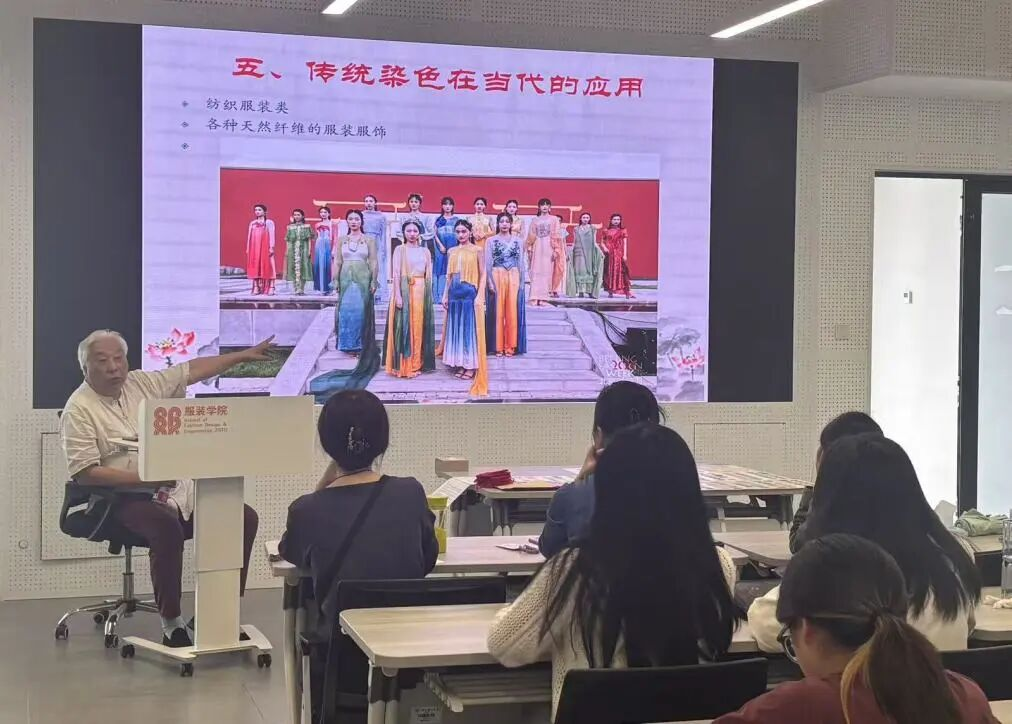 讲座尾声的互动环节气氛热烈。面对师生们提出的工艺难点、色彩稳定性及传统技艺现代转型等核心问题,黄荣华深入解答,倾囊相授。他特别鼓励青年学子勇于实践,将非遗的种子播撒进当代生活的土壤,让古老色彩在未来设计中焕发全新的生命力。