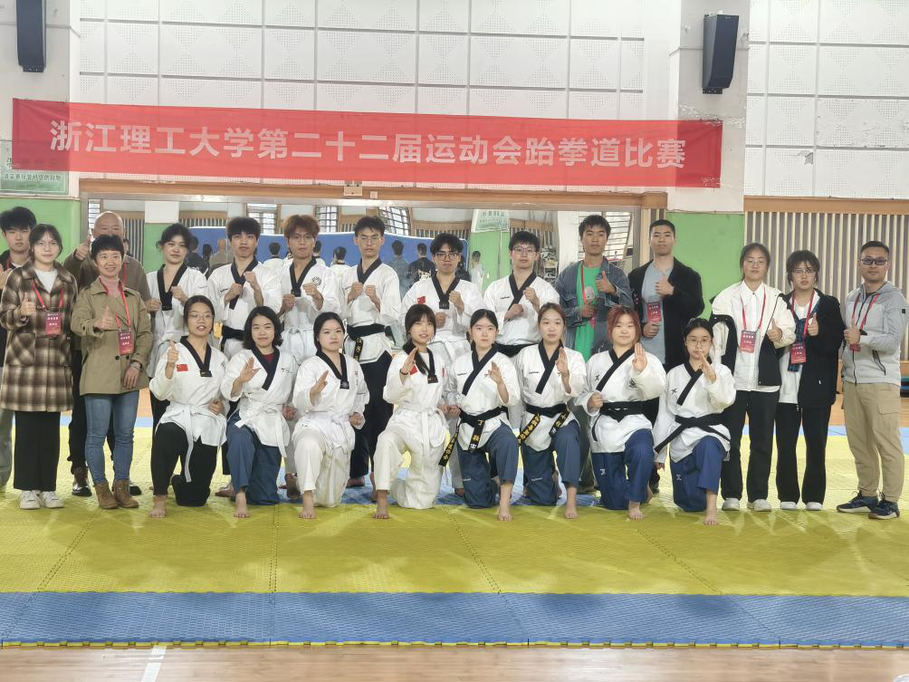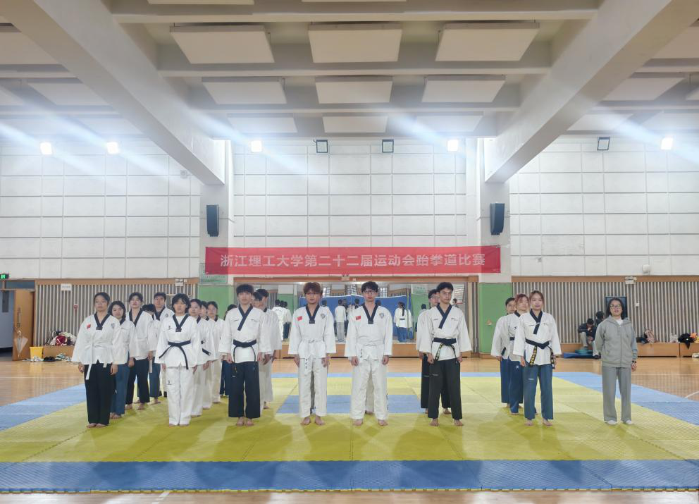 跆拳道比赛设男子单人品势太极三章、五章,女子单人及团体品势太极三章、五章五大项,吸引11个学院26名选手参赛。比赛现场气氛热烈,选手身着白道服、系彩色腰带,精神抖擞。裁判令下,选手依次上场,动作刚柔并济,精准到位,展现扎实基本功与高超技艺。经激烈角逐,机械工程学院、计算机科学与技术学院(人工智能学院)、服装学院分获团体总分前三名。计算机科学与技术学院、机械工程学院、经济管理学院获“体育道德风尚奖运动队”称号。