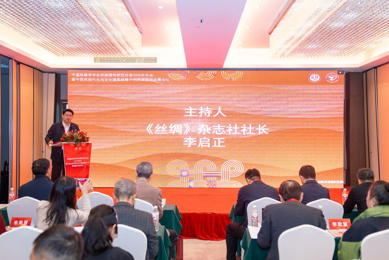 主旨报告环节由《丝绸》杂志社社长李启正主持,6位权威专家带来深度学术分享。中央民族大学中国少数民族研究中心主任祁进玉教授、日本神奈川大学周星教授、中国艺术研究院李宏复教授、中国民族博物馆原副馆长韦荣慧、东华大学纺织服饰博物馆原副馆长陈坚教授、学校服装学院夏帆教授分别作主题报告,为民族服饰研究提供了多元学术视角。