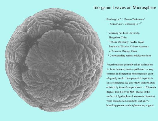 8月8日至13日,第十六届国际晶体生长会议暨第十四届国际气相生长与外延会议在北京国际会议中心举办。我校2008级应用化学专业硕士研究生鲁年鹏在导师李超荣教授的带领下参加了会议,其参赛作品“Inorganic Leaves on Microsphere”的电镜照片荣获一等奖。中国科学院院士、中国晶体生长协会主席陈创天为鲁年鹏颁奖。
