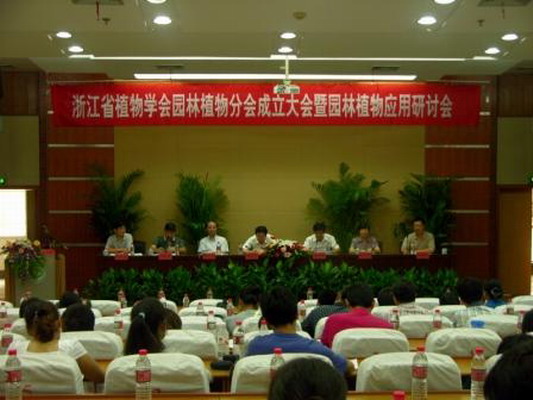 7月4日,由我校建筑工程学院主办、浙江省植物学会协办的“浙江省植物学会园林植物分会成立大会暨园林植物应用研讨会”在学校行政楼二楼报告厅举行。浙江省林业厅副厅长杨幼平,浙江省植物学会副理事长兼秘书长于明坚、副理事长柳新红,浙江省花卉协会会长徐培金,我校党委委员、校长助理陈文兴和建工学院有关负责人以及省内各花卉苗木企业负责人等出席大会。