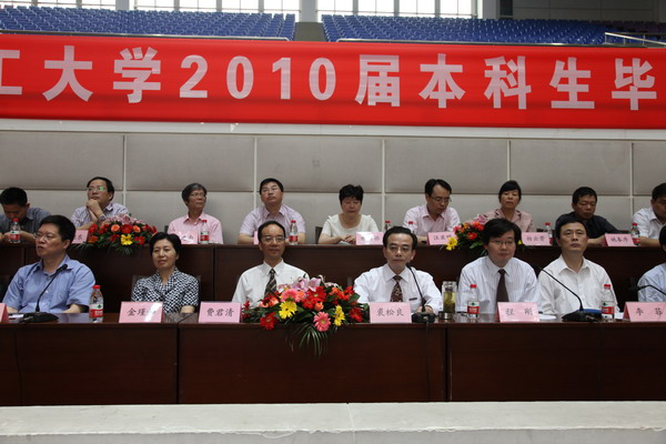 裘松良在典礼上作了热情洋溢的讲话。他对2010届本科毕业生在校期间为学校的建设与发展所作出的贡献表示了肯定与感谢,并语重心长地指出,大学毕业开启的是同学们人生历程的又一新起点,希望广大毕业生在今后的学习和工作中,一要永远保持进取之心,努力成就事业目标,实现人生价值;二要时刻紧守责任之心,自觉讲求奉献,为国家富强、人民福祉、人类文明进步作出应有贡献;三要持久拥有豁达之心,坚持做到珍爱他人,真诚待人。他寄语广大毕业生们能以学识才智造福社会,以精神品德影响他人,踏实做好未来之平凡事,努力成就中华之栋梁。