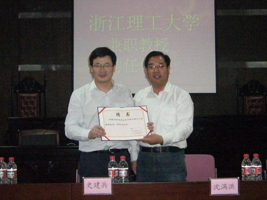 聘任仪式由学院党总支书记主持。法政学院副院长介绍了吴强军、史建兵的基本情况,沈满洪为吴强军、史建兵颁发了聘书并佩戴了校徽,并作了热情洋溢的致辞。