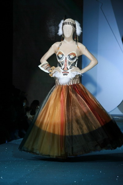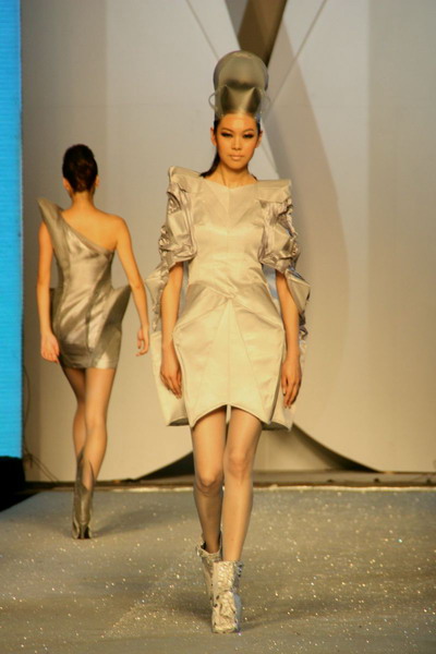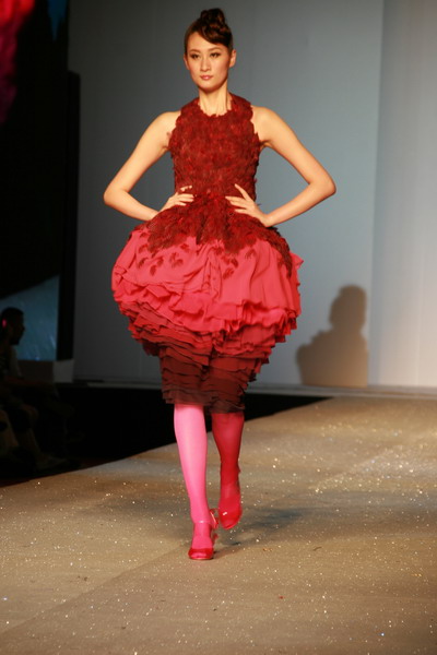 汇演分为“国际、生态、未来、童趣”四大篇章。起舞弄清影,台湾辅仁大学、日本杉野服饰大学、韩国水源女子大学在汇演开篇呈现了国际时尚风;低碳倡环保,亭亭净植、不蔓不枝,绿意霓裳、敬献华服;空灵聚遐想,思绪月下飞雪著,清澈甘醇,仰望广袤天空澈,群星疏朗;天真秀烂漫,可爱的baby秀使会场俨然成为了一片充满欢乐和童趣的海洋。60分钟,专注的程度无以复加,符号化的演出展示了设计师心灵的魅力和辛劳的结晶。