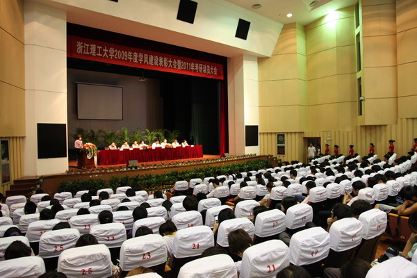 5月26日下午,学生活动中心小剧场500余名学生代表齐聚一堂,气氛热烈,2009年度学风建设表彰大会暨2011年考研动员大会在这里举行。校党委副书记程刚,副校长陈建勇,党委、校长办公室,组织部,宣传部,学工部,教务处,研工部等部门负责人出席大会,大会由学工部副部长主持。