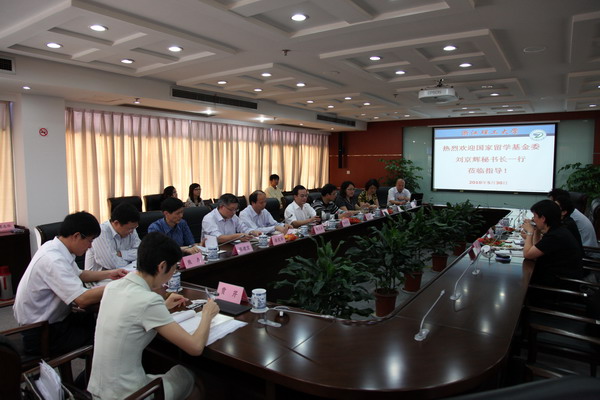 随后,刘京辉一行在行政楼215会议室与校长裘松良、副校长陈建勇以及相关学院、职能部门负责人进行座谈。裘松良详细介绍了我校的发展历程、近年来在教学科研方面取得的主要成绩、学校接收政府奖学金生的软硬件设施和基础条件、学校留学生工作整体发展规划,以及我校国际化专业和课程的设置和开展情况。裘松良表示,我校将全力做好首批来我校的“中国政府奖学金来华留学生”的培养工作,充分发挥政府奖学金生“以点带面”的作用,推动我校留学生教育工作的进一步发展。