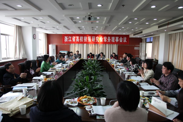 4月30日下午,浙江省高校校报研究会常务理事、副秘书长会议在我校行政楼215会议室召开。研究会理事长金一斌、常务副理事长彭凤仪及副理事长、秘书长、常务理事、副秘书长等三十余人出席了会议,会议由彭凤仪主持。