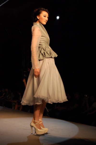 本次毕业设计汇演共展示了120多套服装,分4个系列。第一系列太空金属,运用解构主义方法,选择金属饰物装饰,以黑灰色突显酷感;第二系列幽默波普,运用夸张而有趣的细节、跳跃的色彩、幽默的装饰图案表现服装的趣味性;第三系列梦幻手工,借助精细的手工和女性化细节营造出浪漫优美的着装形象;第四系列欲望都市,成衣过渡到小礼服,强调服装的都市时尚感。
