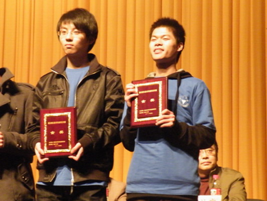 我校由陈文文、方贤忠和肖四维组成的zstu_SunUp队表现出色,最终解出7题,获得一枚宝贵的金牌,成绩排名仅次于浙江大学和浙江工业大学,位列第3。其他6枚奖牌获得者分别是由张杰锋、方澄、王耀组成的zstu_skyrocket队,由林久对、梁宇、胡慧媚(女)组成的zstu_team_orz队,由揭由君(女)、颜慧慧(女)、林敏敏(女)组成的zstu_ppmm队,由董华义、朱立鹏、江灵超组成的zstu_DZZ队,由徐俊、龚洪杰、林德安组成的zstu_zerOne队,以及信电学院的good_baby队。
