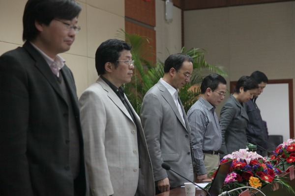 21日是国务院决定举行全国哀悼活动的日子,为表达对青海地震遇难同胞的深切哀悼,开学典礼前,费君清带领全体与会人员肃立默哀。