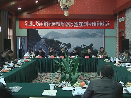 1月24日上午,后勤集团2009年部门总结大会在淳安召开,董事长沈满洪、总务处处长出席会议,后勤集团中层以上干部参加了会议。会议由集团党总支书记主持。