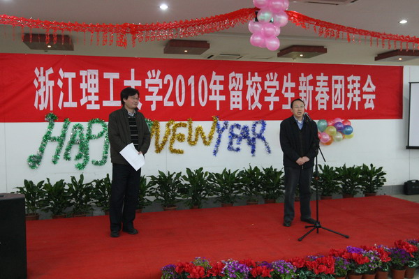 在中华民族最受重视的传统佳节——春节即将到来之际,我校在桂花园餐厅举行了“留校学生2010年新春团拜会”。浙江省委教育工委书记、省教育厅厅长刘希平,省委教育工委委员、省教育厅副巡视员夏建勇一行专门来校看望了留校学生,并融入新春团拜会,和大家一起共贺新年的到来。