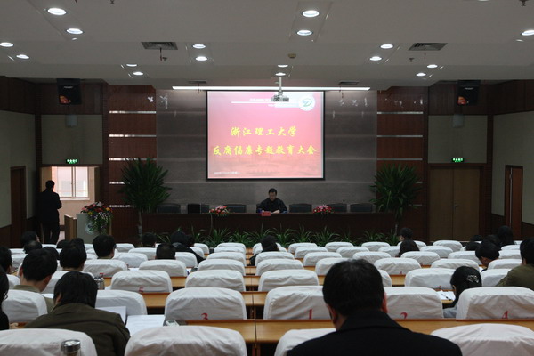 为认真贯彻落实省委关于在全省领导班子和领导干部中开展反腐倡廉专题教育活动的通知精神,根据学校开展“六个一”反腐倡廉专题教育活动安排,11月25日下午,我校在行政楼二楼报告厅召开了反腐倡廉专题教育大会。大会由校纪委书记李菲主持。校党委副书记金瑾如,副校长戴文战、陈建勇出席大会,学校中层以上干部及现职正科干部参加了会议。