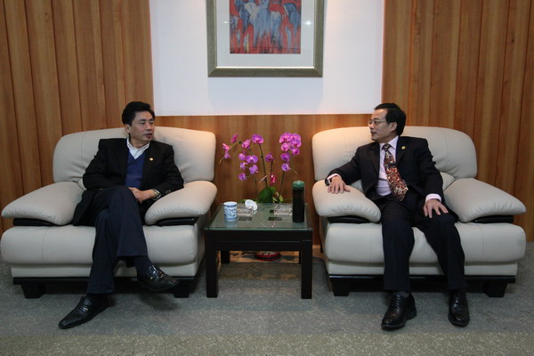 双方在行政楼304会议室进行了会谈。裘松良向谢和平一行介绍了我校的发展历程,并介绍了学校的顶层设计、办学思路和教学、科研、学科建设等方面的情况,以及学校在近几年的发展中所取得的成绩。谢和平对我校的热情接待表示感谢,对我校近几年所取得的成绩表示赞许,并提出今后要加强两校的交流与合作。