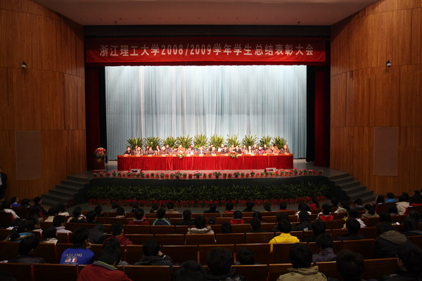 11月18日下午,我校2008/2009学年学生总结表彰大会在国际会展中心隆重举行。校长裘松良,副校长戴文战、陈建勇、沈满洪,纪委书记李菲,华鼎集团公司总裁丁雄尔,党委、校长办公室,党委组织部,党委宣传部,党委学工部,教务处,党委研工部,校友办等部门负责人及各学院负责人出席大会并在主席台就坐。参加大会的还有各学院学生工作负责人、获奖学生、09级学生代表共计800余人。会议由校党委副书记程刚主持。