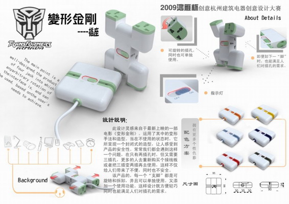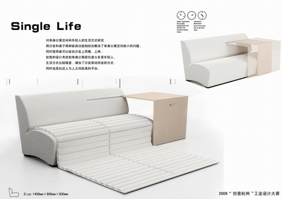 艺设学院唐豪同学的作品“Single Life”、刘伊聪同学的作品“分割茶几”、蒋之炜同学的作品“防粘连厨房刀具”和科艺学院赵煜龙同学的作品“地图伞”获大赛优秀奖。其中艺设学院唐豪同学的作品“Single Life”同时获得分赛场“顾家工艺杯”铜奖,麻锐同学的“sightseeing vehicle观光车”获“杭叉杯”铜奖,巫晓慧同学的“组合办公桌”获“圣奥杯”铜奖,赵月同学的“手环遥控电磁炉”和周海洪同学的“‘合’而不同(折叠式两用电磁炉)”同获“健康九阳杯”铜奖。科艺学院赵煜龙同学的作品“地图伞”同时获得“鸿雁杯”铜奖,林滨滨同学的“变形金刚插座”获“天堂伞杯”银奖。