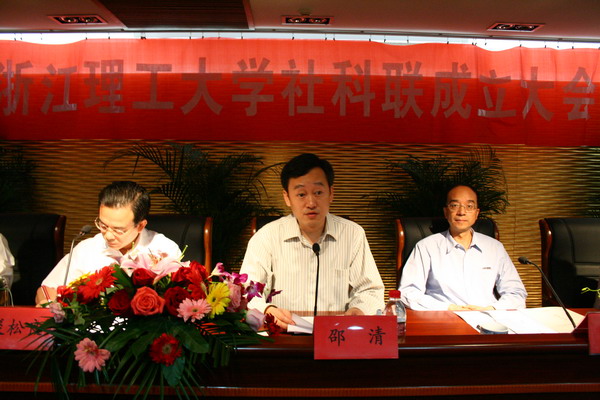 邵清致词对校社科联成立表示热烈祝贺。他充分肯定了我校这几年来在社会科学发展中取得的成绩,认为校社科联的成立是学校发展史上的一件大喜事。同时他希望社科联能够充分发挥桥梁纽带、组织协调、咨询服务、宣传普及的作用,为学校人文社会科学发展做出贡献。