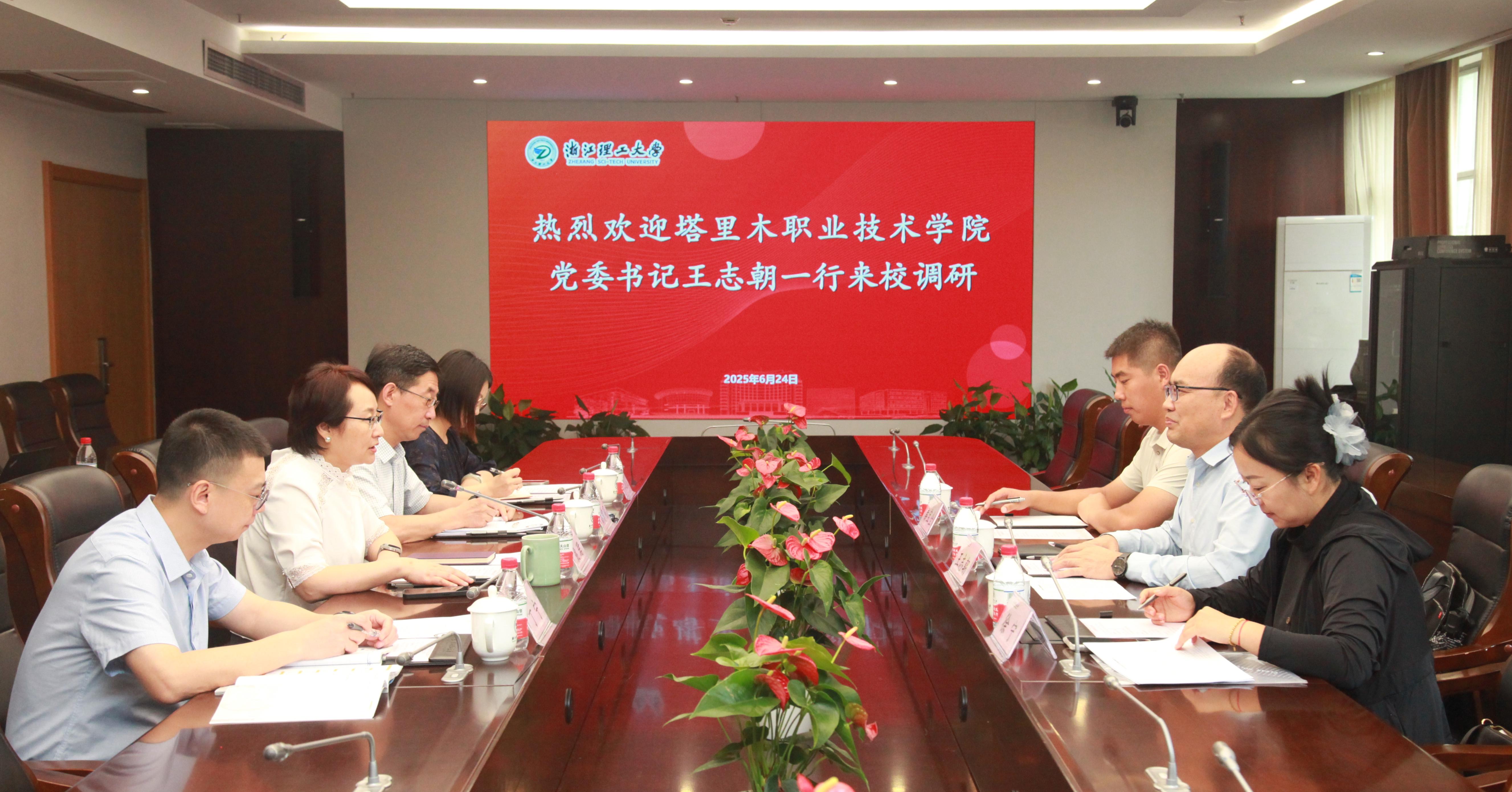 6月24日上午,塔里木职业技术学院党委书记王志朝一行来校调研,党委副书记姚珺陪同调研并参加座谈会。