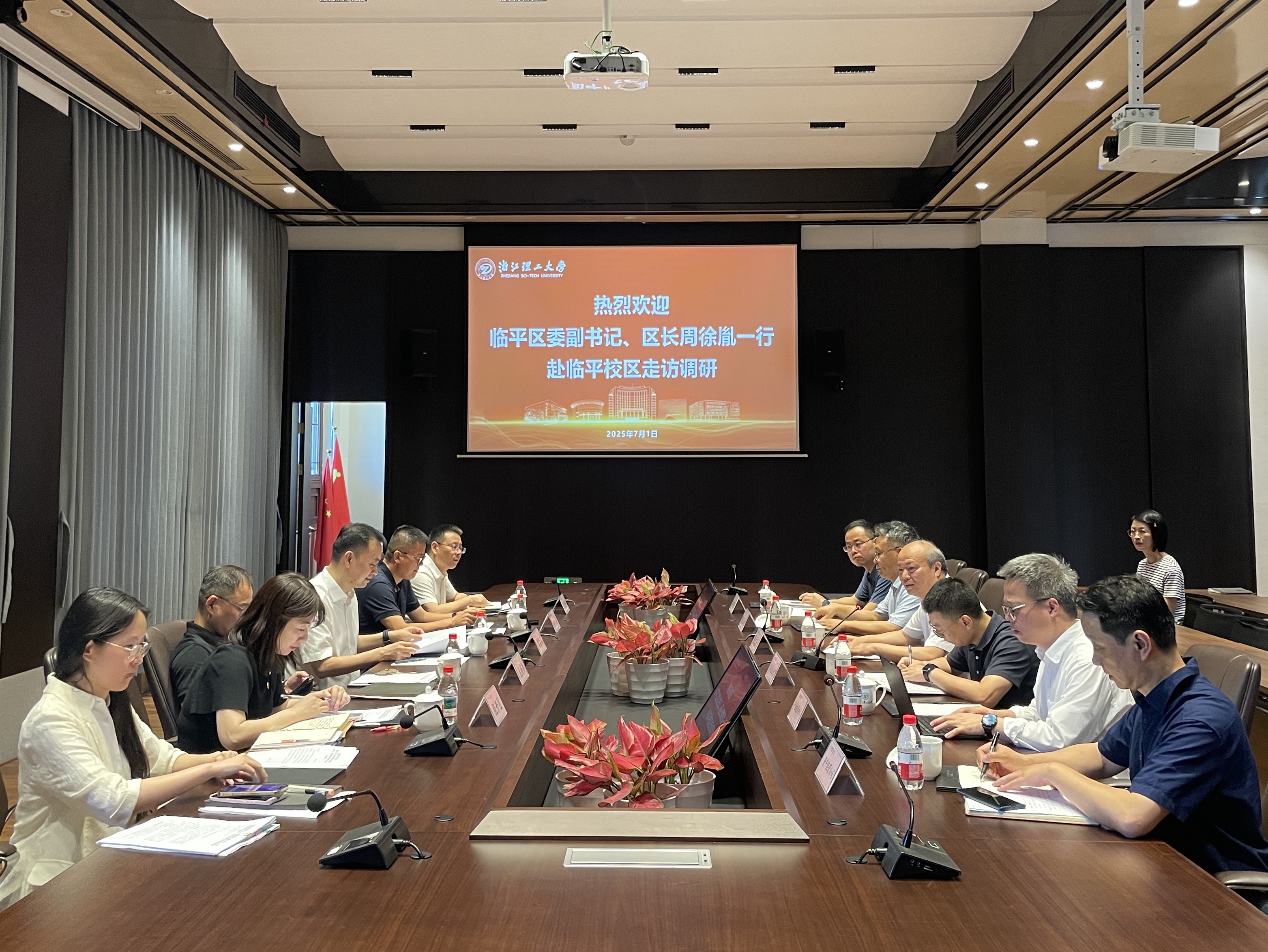 7月1日,临平区委副书记、区长周徐胤,副区长华东一行来到c7网页版临平校区进行走访调研。c7网页版校长陈文兴、副校长郭玉海接待,并在蚕学馆二楼会议室进行座谈。会议由陈文兴主持。