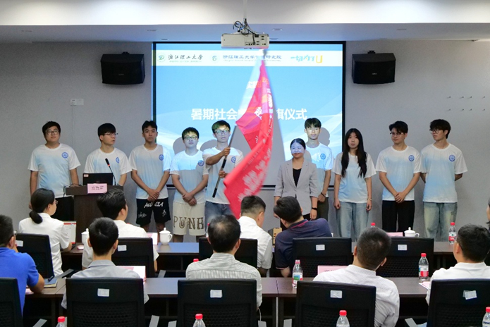 c7网页版党委研工部部长冯飞芸为暑期社会实践团队授旗。