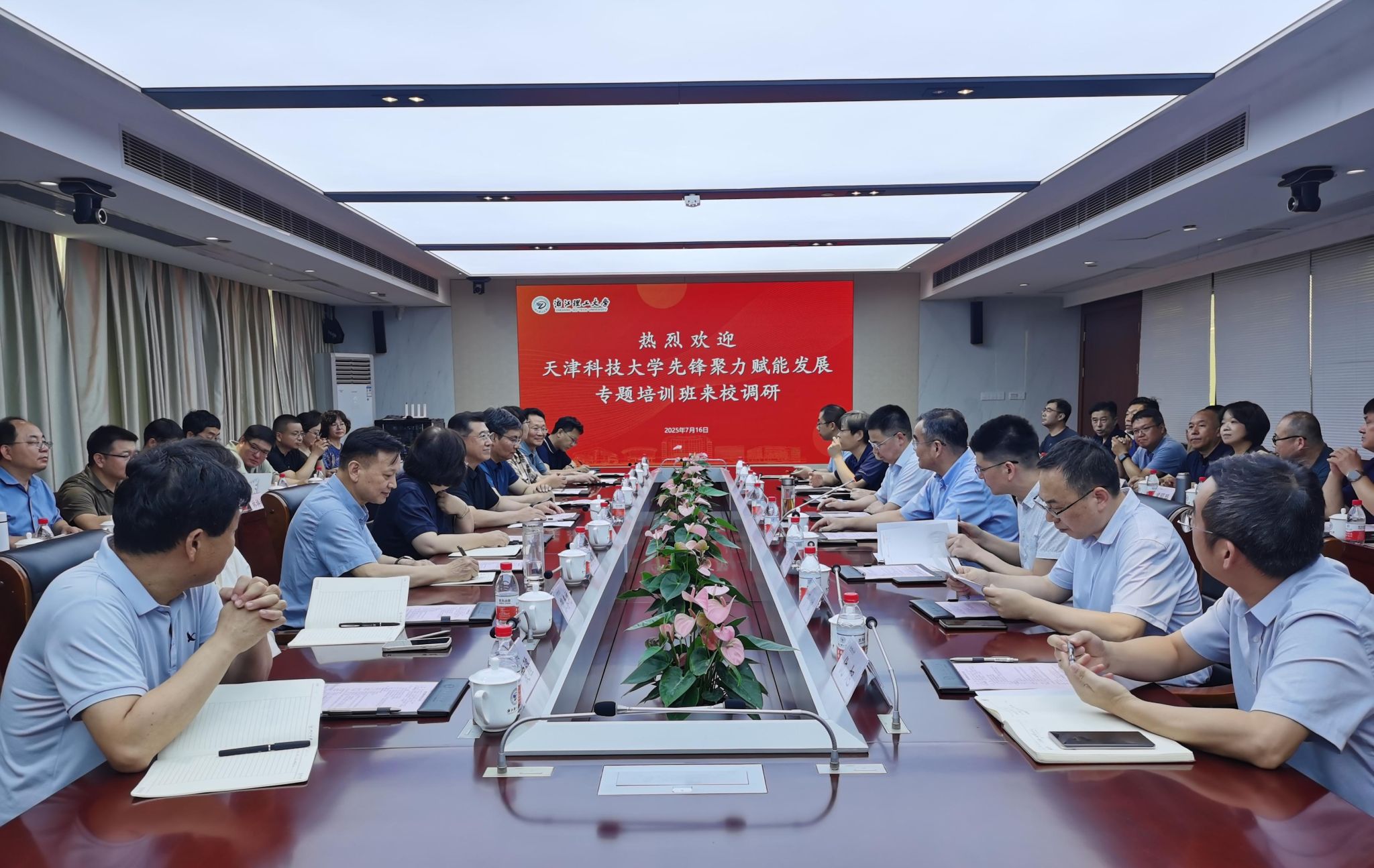 7月16日下午,天津科技大学党委书记白海力一行来校调研,天津科技大学先锋聚力赋能发展专题培训班成员参加调研。c7网页版党委书记赵全军出席座谈会,副校长姚菊明陪同调研并主持座谈会。