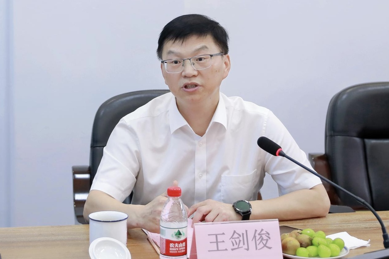 王剑俊讲话,他表示,本次交流活动意义深远。他强调校友会是维系校友情感、服务校友成长的重要纽带。希望两校杭州校友会以此为契机,深化交流互鉴,提升服务效能,努力成为校友发展路上的坚实后盾和推动母校前行的有力支撑。