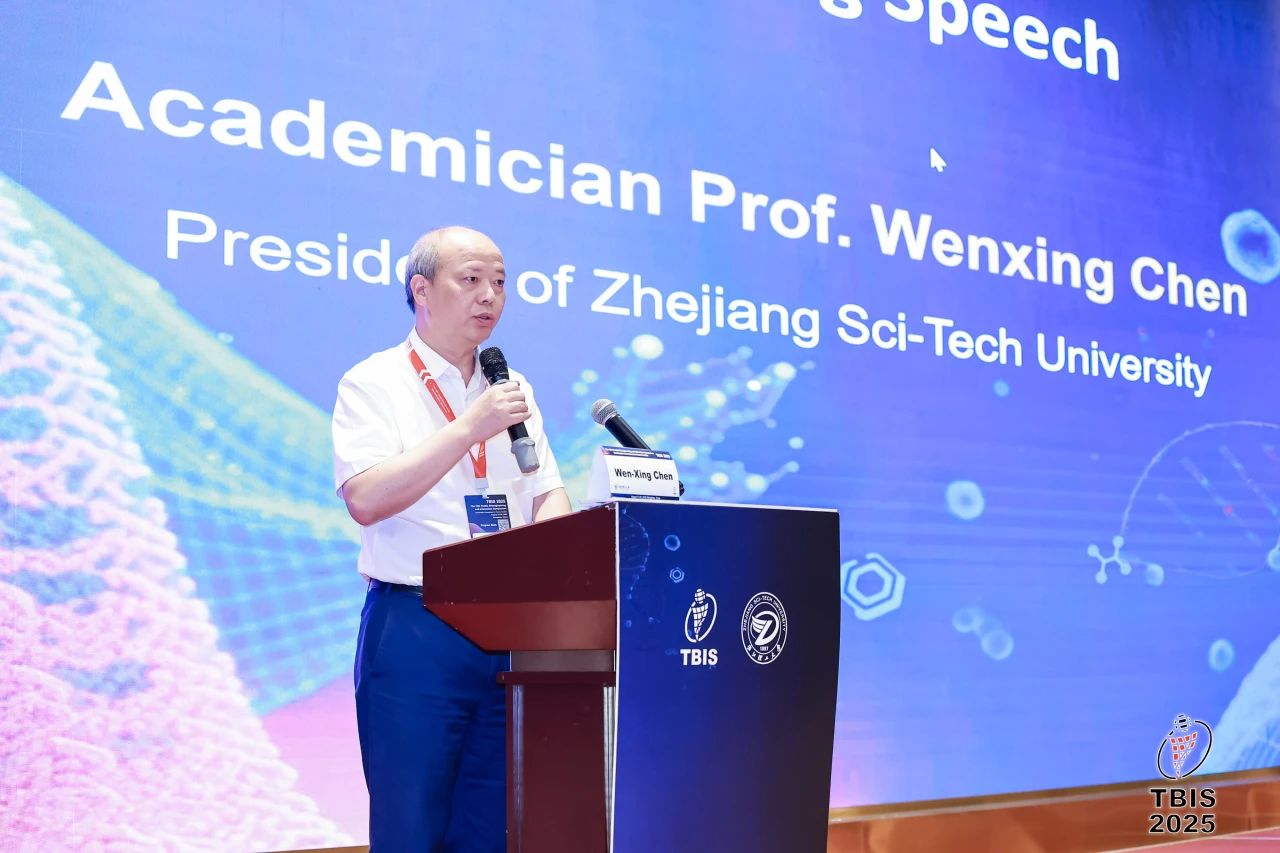 朱美芳为大会致辞。她回顾了TBIS自2008年创办以来的成长历程。她指出,本次会议汇聚了不同国家、不同领域的专家学者,聚焦先进材料、智能制造、人工智能及可持续发展等重要议题,通过跨领域交流合作,凝聚各方智慧,共同推动纺织生物工程迈向智能化、绿色化、全球化的新未来。