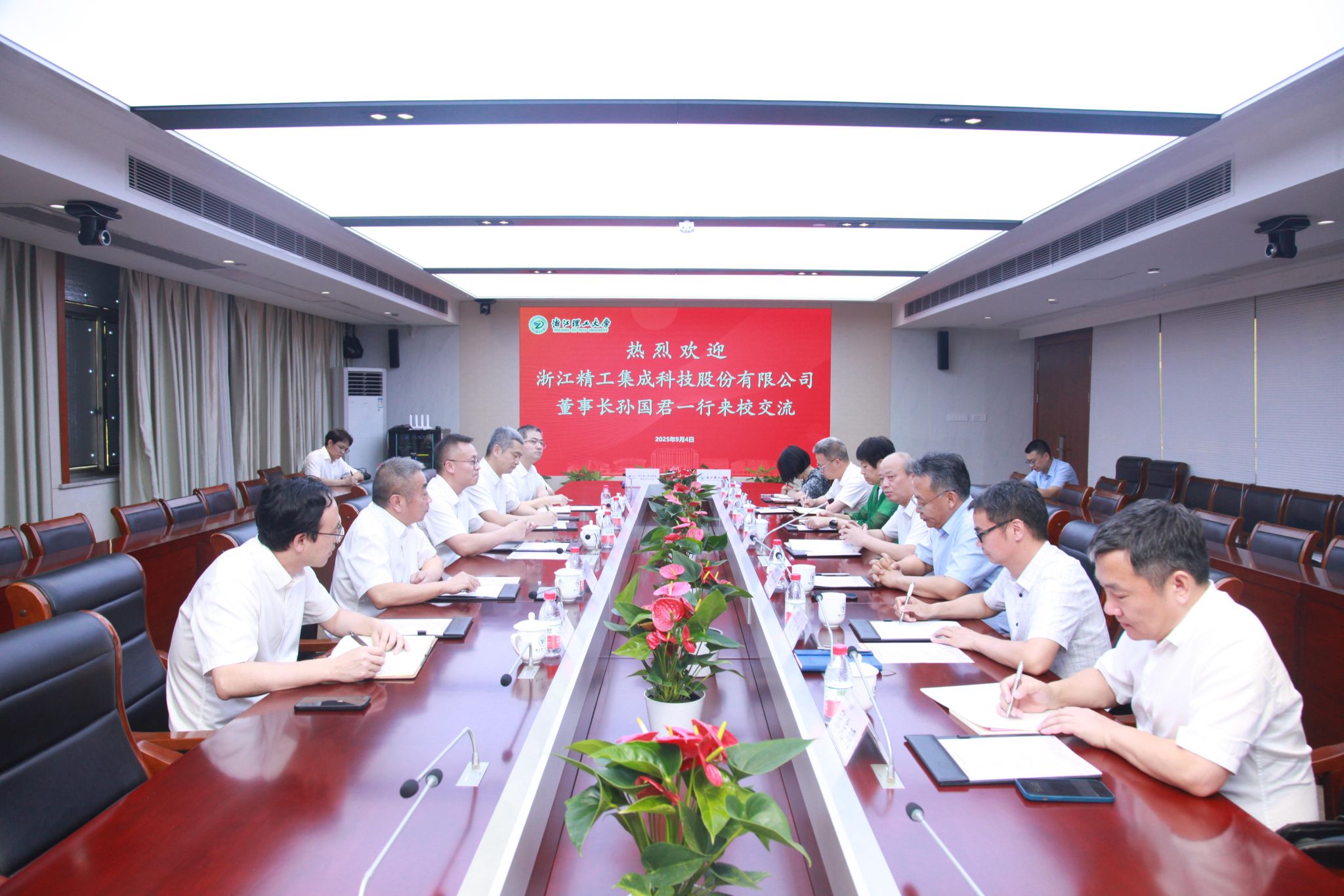 陈文兴对精工科技一行表示热烈欢迎。他介绍了学校基本情况,并表示此次活动既是校企双方响应国家和浙江战略需求的务实行动,也是高校优势资源与企业核心能力的深度耦合。双方立足创新浙江建设所需,聚焦产业前沿与紧缺人才需求,共同谱写协同育人、协同创新、协同发展的崭新篇章。