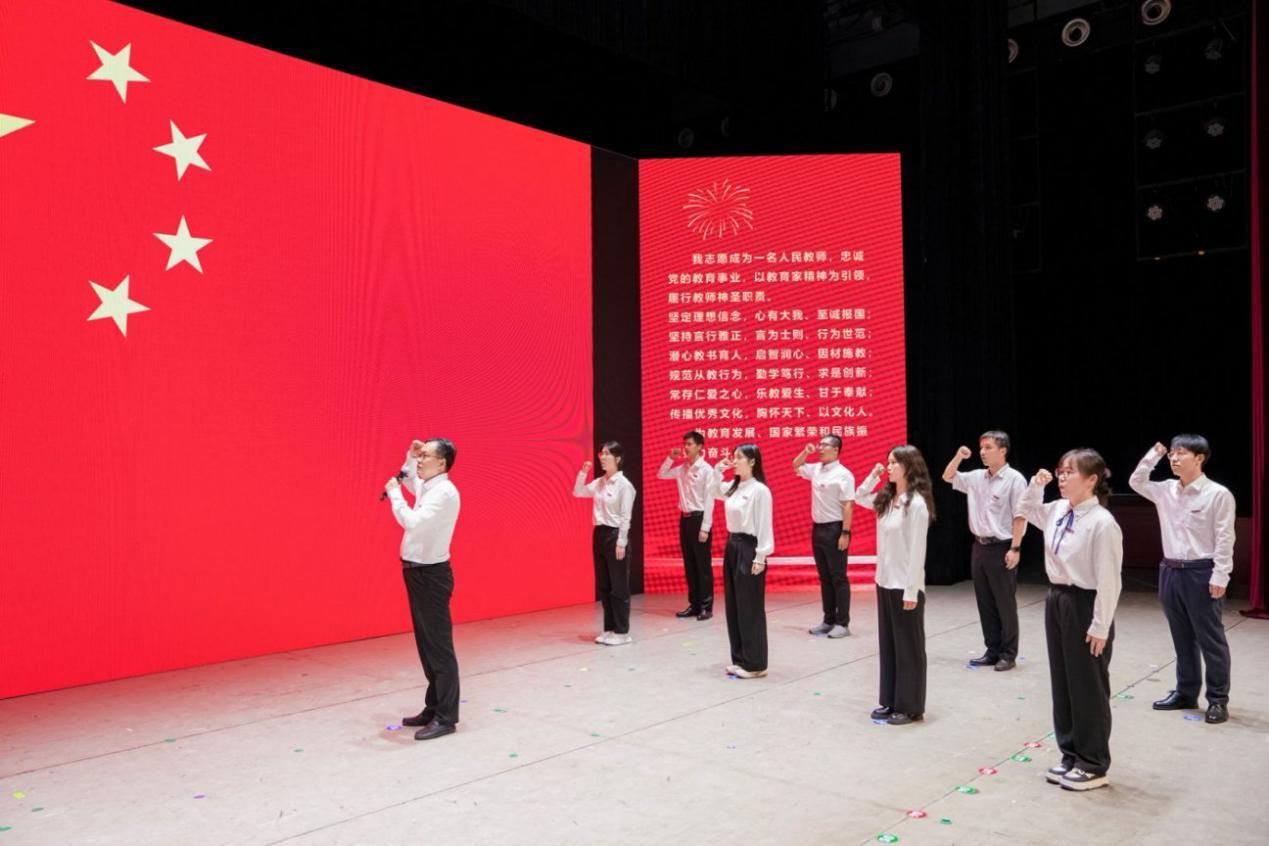 校党委副书记缪鲁加带领全体与会教师进行集体宣誓。