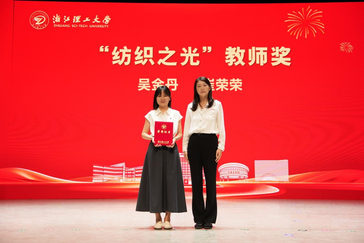 校党委委员、党委组织部部长任宁为“纺织之光”教师奖获奖教师代表颁发证书。