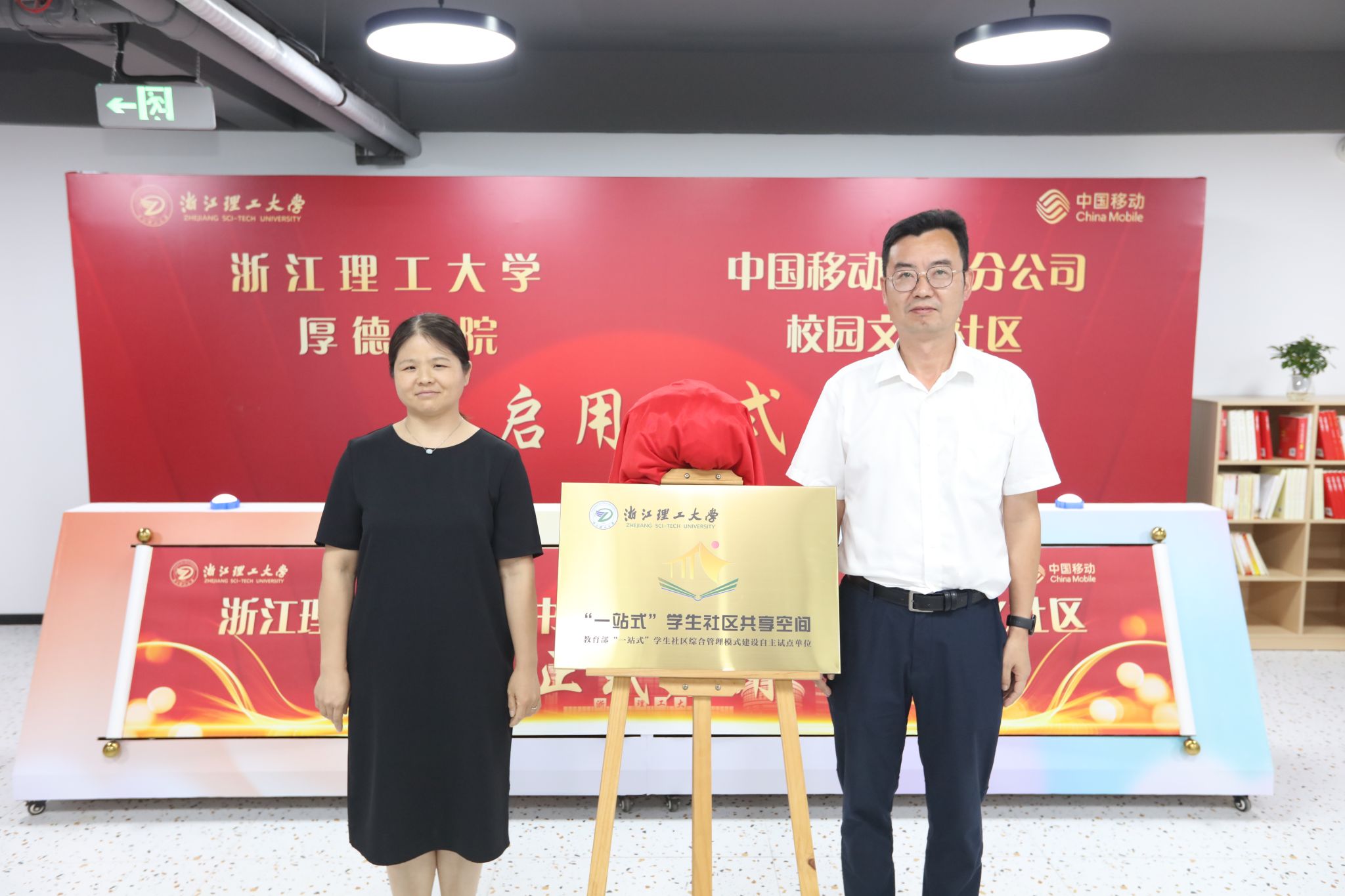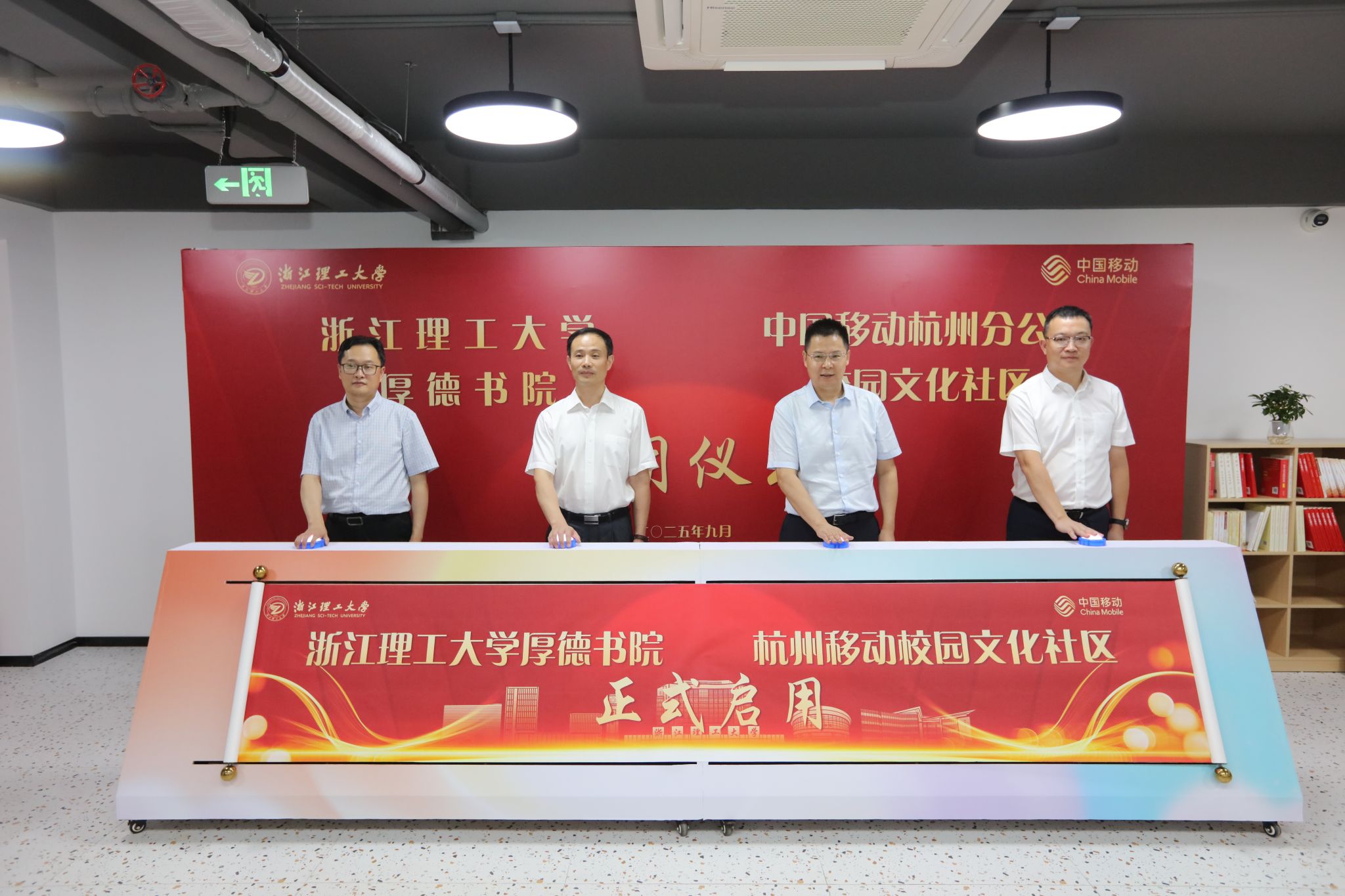 9月17日下午,我校厚德书院校园文化社区(“一站式”学生社区共享空间)启用仪式在下沙校区举行。校党委书记赵全军、党委副书记缪鲁加,中国移动杭州分公司党委书记、总经理徐向东,副总经理诸葛毅,中国移动钱塘分公司总经理方勇出席仪式,双方领导共同为厚德书院校园文化社区按下启用键。