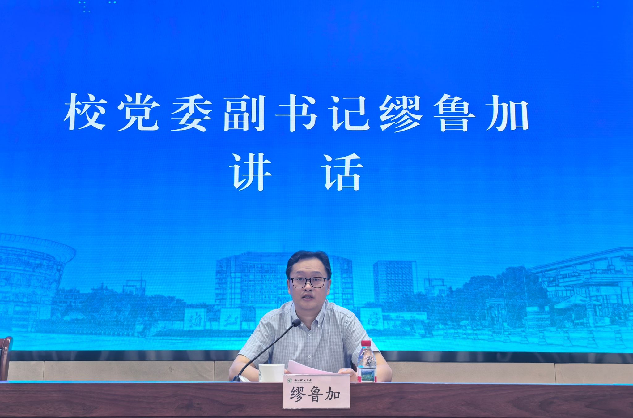 会议举行了新生班主任聘任仪式,缪鲁加为2025级本科生新生班主任代表颁发了聘书。